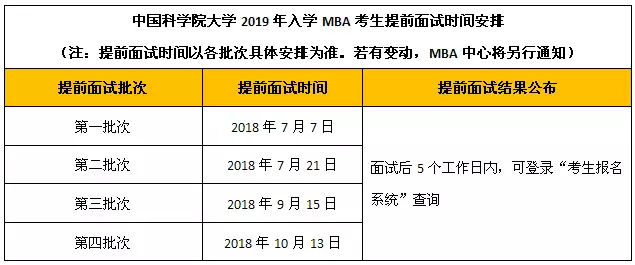 2、2018年6月至10月,中国科学院大学MBA教育管理中心将组织专家组对网上提交提前面试申请的考生进行综合评估审核 ,在审核截止之前考生可继续提交提前面试申请。