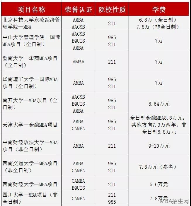小编想在这里说句公道话,其实不是所有商学院都那么“高冷”,也有很多获得国际认证、且自身是211/985的商学院,其MBA项目学费不高!