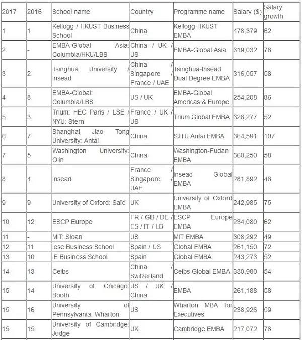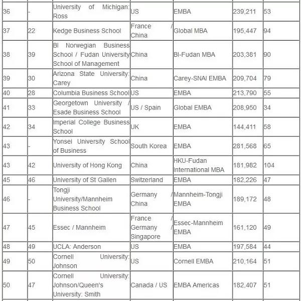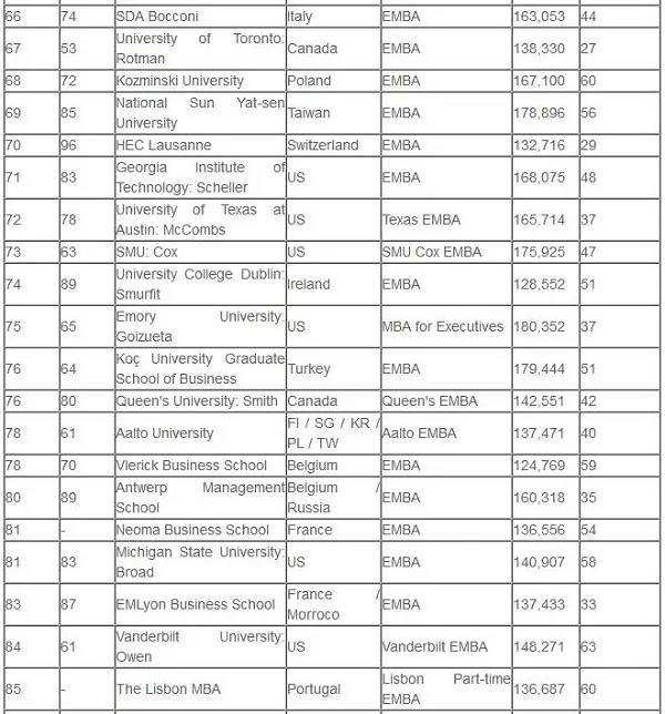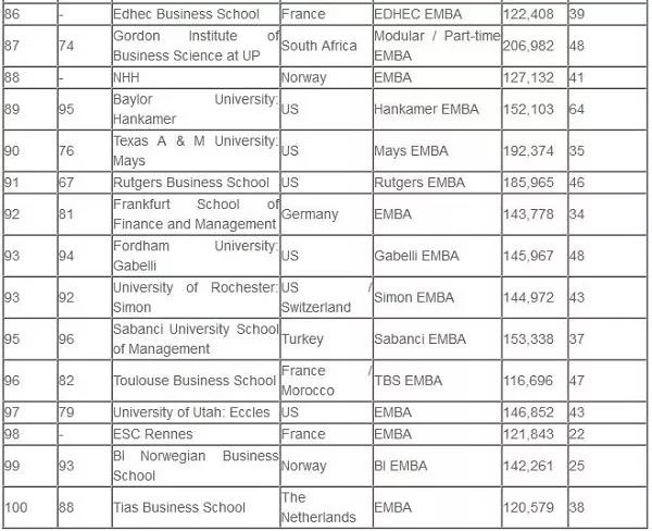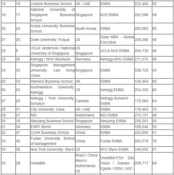(全球EMBA百强名单)