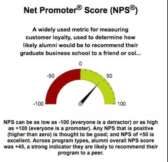 4.口碑评估:NPS分数(即净推荐值),反映校友是否愿意向他人推荐自己的学校。