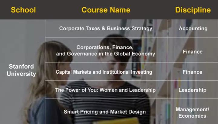 企业家精神如一颗冉冉升起的星星,正在成为当代商业领域的中流砥柱!在这次改革中,有12门课程专门围绕企业家精神进行;其中,斯坦福大学将课程主题定为 —— The Power of You: Women and Leadership(你的力量:女性与领导力),通过一系列的案例研究与实践,帮助女性领导者克服社会刻板印象,完成个人领导力的提升。
