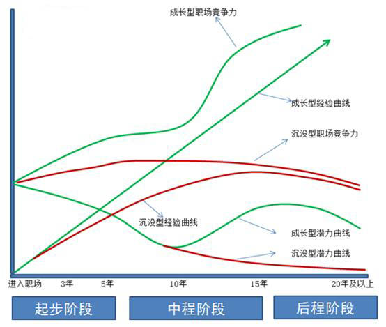 如果在此之前你不能保持自己的职场竞争力曲线向良性的方向发展,职场的后半场将会变得越来越艰难,尤其遇到大的环境变革等,抗风险能力很弱,很容易被职场抛弃!