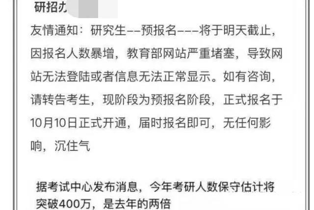 历经九九八十一难以及四天的折磨,终于预报名结束,可以放宽心了。然并卵,一条消息迅速出现在朋友圈、QQ空间、微博、QQ微信群组以及我们所有有可能跟考研沾边的地方……