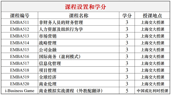 以比利时列日大学EMBA课程为例: