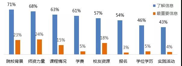 学员在择校时主要会了解院校背景、师资力量、课程情况、学费、校友资源及报名流程;师资力量和院校背景是学员考量的最重要因素,其次是校友资源及课程情况。
