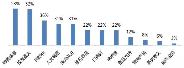 师资力量雄厚和校友资源强大被认为是理想EMBA院校最应具备的两个特点,其次是国际化程度高、人文底蕴深厚和教育理念先进。