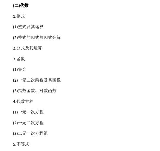 代数部分一共可分为四个知识点模块:代数式(整式与分式)、函数、方程、不等式、数列。