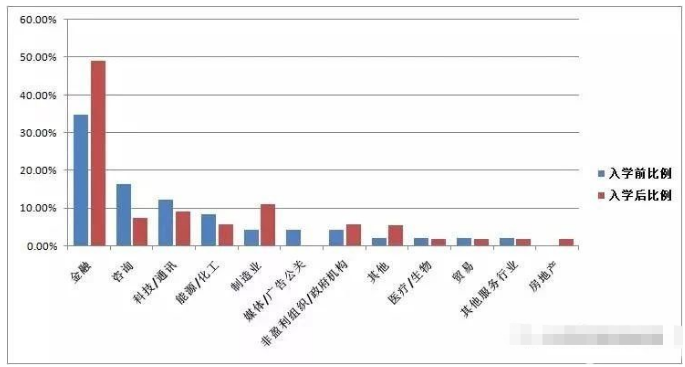 据《QSTOPMBA就业与薪酬趋势报告》显示,超过50%的MBA毕业生进入金融、咨询等高薪行业。就行业分布而言,想进入金融行业,MBA是一块有效的敲门砖。