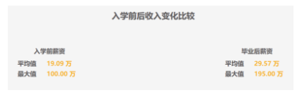 据浙江大学管理学院2017届MBA就业情况分析,学员入学前薪资平均值19.09万,最大值100万,毕业后薪资平均值29.57万,最大值195万,薪资增长幅度明显,且创业及打算创业人数比例也提升不少。
