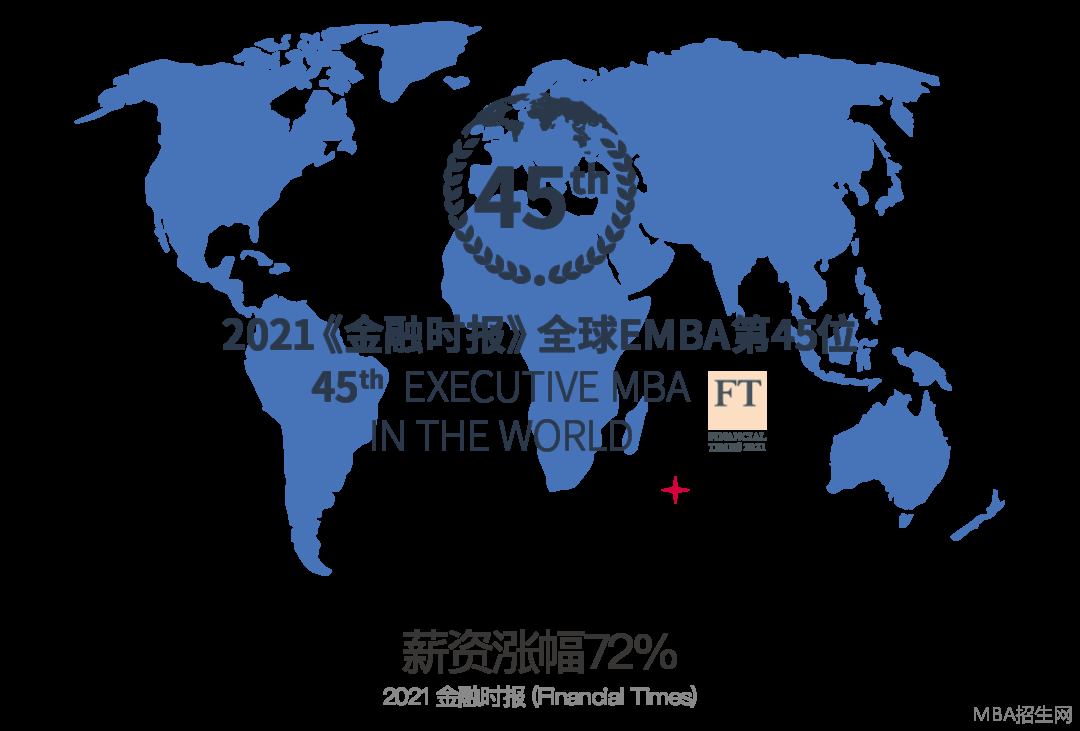 2021年度《金融时报》最佳工商管理硕士 (在职MBA) 排名全球45位,蝉联中国前15强,稳居世界前列。学员毕业3年后的平均薪资涨幅高达72%。