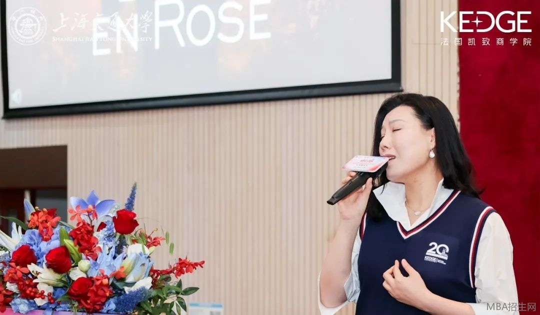 真挚感谢且有荣幸邀请到EMBA 2015级校友 李梦婕女士为我们高歌经典法式香颂情歌《La Vie En Rose》,是如此慵懒、浪漫、迷人。在李梦婕女士歌声的薰陶下,也如歌词诉说的那般,仿佛在告诉我们:“要把生活看成粉红色的,对待人生要乐观”。