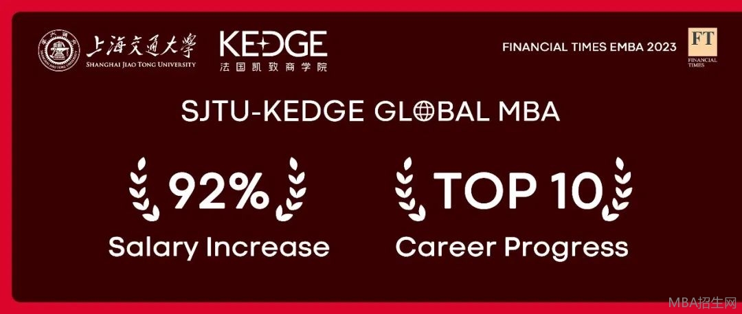 10月15日,英国《金融时报》(Financial Times)公布了2023年全球EMBA项目百强榜,上海交通大学-法国凯致商学院国际在职MBA项目(SJTU-KEDGE Global MBA)荣登全球第18位,跻身世界20强之列,较去年排名上升了24位!二十年来,这一项目始终在法国和中国表现亮眼,2023年最新排名中位列全法前5,中国前6!