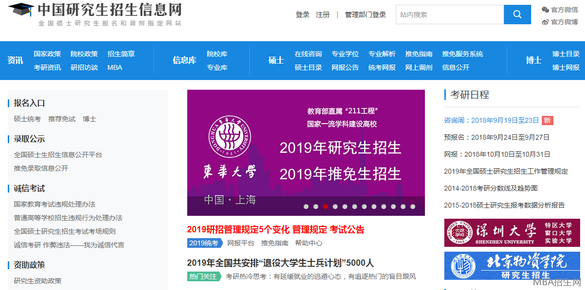 预报名是需要在网上进行的,而报名的网站只有一个,就是中国研究生招生信息网(简称“研招网”),这个是国家统一规定的报名网站,只此一家,别无分号!