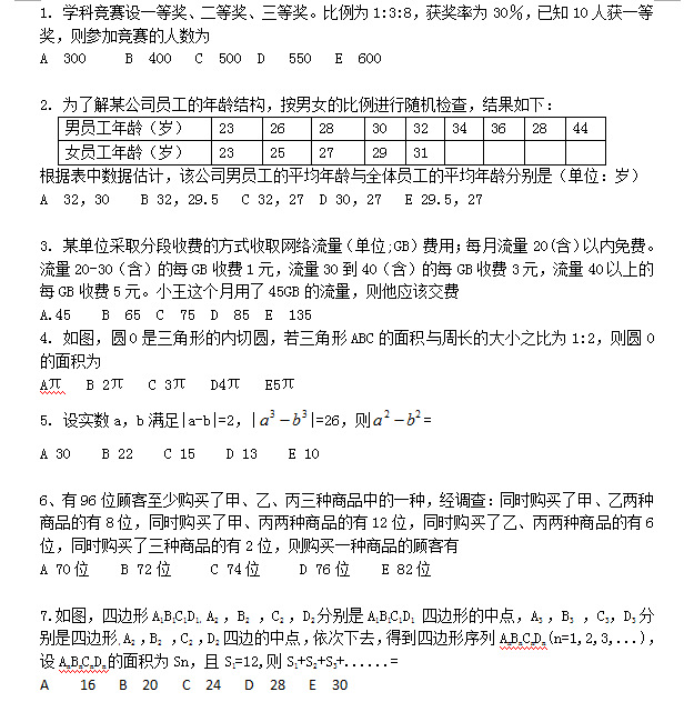 三、逻辑推理:第26~55小题,每小题2分,共60分。下列每题给出的A、B、C、D、E五个选项中,只有一项是符合试题要求的。请在答题卡上将所选项的字母涂黑。