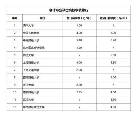 会计作为一门非常热门的专业不论是本科或是研究生每年报考的人数都很多,特别对于会计专业硕士来说,每年报考的人数都超过十万人。不过对于各个院校来说,报名的比例还是不一样的,这个与院校的知名度、该专业强度、院校所处位置和学费等方面有密切的联系。针对学费这个大家非常关注的内容,小编给大家提供一个会计专业硕士高校学费的排行榜,大家可以参考以下学费标准,根据自己的学费状况,选择一个比较好的学校。